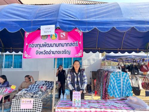 ในการนี้ นายชัยยงค์ ผ่องใส พัฒนาการจังหวัดอำนาจเจริญ มอบหมายให้ นางสาวรักนิกร แสนทวีสุข ผู้อำนวยการกลุ่มงานยุทธศาสตร์การพัฒนาชุมชน พร้อมด้วยเจ้าหน้าที่พัฒนาชุมชนจังหวัดอำนาจเจริญ เข้าร่วมกิจกรรมดังกล่าว พร้อมออกหน่วยบริการการแก้ไขปัญหาหนี้สิน โดยกองทุนพัฒนาบทบาทสตรี และนำกลุ่มผู้ผลิต ผู้ประกอบการ OTOP เข้าร่วมจำหน่ายจำนวน 13 บูธ มียอดจำหน่าย รวม 37,300 บาท