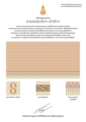ลายพระราชทานประจำปี ๒๕๖๙ สมเด็จพระเจ้าลูกเธอ เจ้าฟ้าสิริวัณณวรี นารีรัตนราชกัญญา ทรงพัฒนาลวดลายจากลายประวัติศาสตร์ "ลายขอสมเด็จฯ" ผสมผสานกับ "ลายขอเจ้าฟ้าฯ" เพื่อให้คนไทยได้รำลึกถึงพระมหากรุณาธิคุณของ สมเด็จพระนางเจ้าสิริกิติ์ พระบรมราชินีนาถ พระบรมราชชนนีพ้นปีหลวง ทรงออกแบบ "ลายขอสร้อยทอง" เพื่อรำลึกถึง การประกวดผ้าที่พระตำหนักภูพานราชนิเวศน์ จังหวัดสกลนคร ที่สมเด็จพระบรมราชชนนีพ้นปีหลวง ได้พระราชทานสร้อยคอทองคำแก่ผู้ที่ชนะการประกวดผ้าและทรงต่อยอด "ดอกไม้พระนามาภิไธยสมเด็จพระบรมราชชนนีพันปีหลวง