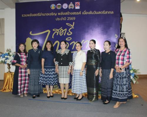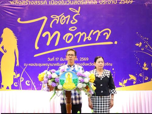 นางสุขสมรวย วันทนียกุล (สมาชิกสภาผู้แทนราษฎร จังหวัดอำนาจเจริญ เขต 1) ประธานคณะกรรมการพัฒนาสตรีจังหวัดอำนาจเจริญ กล่าวรายงานว่า ด้วยคณะกรรมการพัฒนาสตรีจังหวัดอำนาจเจริญ ได้จัดทำ โครงการรวมพลังสตรีอำนาจเจริญ พลังสร้างสรรค์ เนื่องในวันสตรีสากล ประจำปี 2569 ขึ้นเพื่อเป็นการเฉลิมฉลองความเสมอภาค ความเท่าเทียมกันในสังคมของสตรี เนื่องในวันสตรีสากล เป็นการแสดงพลังสตรี ในการสร้างสรรค์ ในการแก้ไขปัญหาสตรีด้านการพัฒนาคุณภาพสตรีสากล และเป็นการประชาสัมพันธ์ผลการดำเนินงานของสตรีอำนาจเจริญให้เป็นที่รู้จักแพร่หลายมากขึ้น ซึ่งกิจกรรมประกอบด้วย