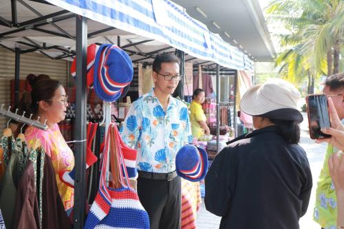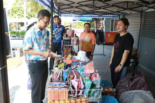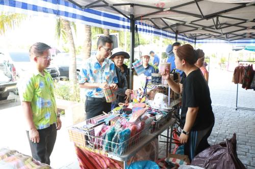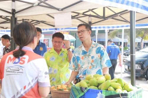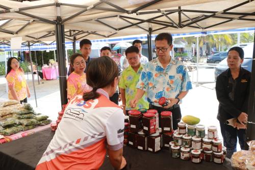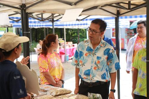 โดยผู้ว่าราชการจังหวัดฯ ได้พบปะพูดคุยกับผู้ประกอบการและประชาชนที่มาจับจ่ายสินค้า พร้อมมอบพันธุ์ผักให้แก่ผู้ที่ร่วมอุดหนุนสินค้า OTOP ครบ 200 บาท เพื่อนำไปปลูกบริโภคในครัวเรือน ช่วยลดรายจ่ายและส่งเสริมการพึ่งพาตนเองตามแนวทางเศรษฐกิจพอเพียง